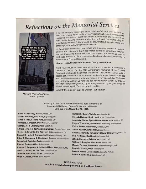 Edmund Fitzgerald 50th Anniversary Memorial Service (2025)